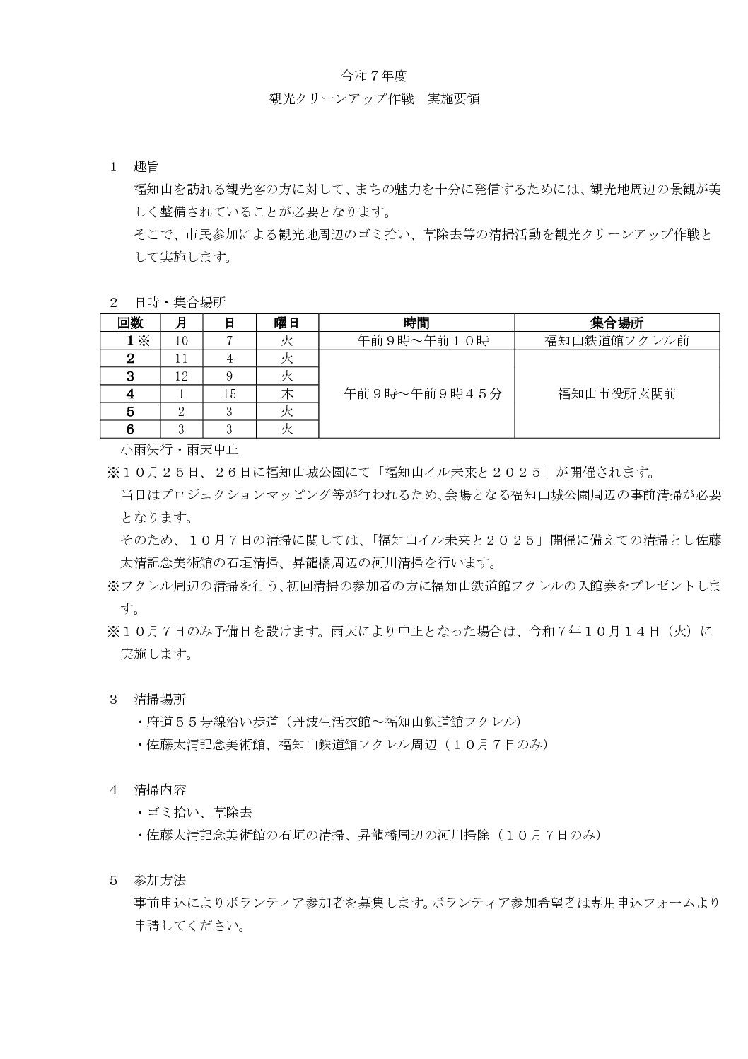 続きを読む福知山を訪れる観光客の方に対して、まちの魅力を十分に発信するためには、観光地周辺の景観が美しく整備されていることが必要となります。 そこで、市民参加による観光地周辺のゴミ拾い、草除去等の清掃活動をクリ...